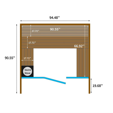 Wooden — 94.48" W × 90.55" D × 96.45" H, equipped with Harvia Electric Sauna Heater – 1 unit